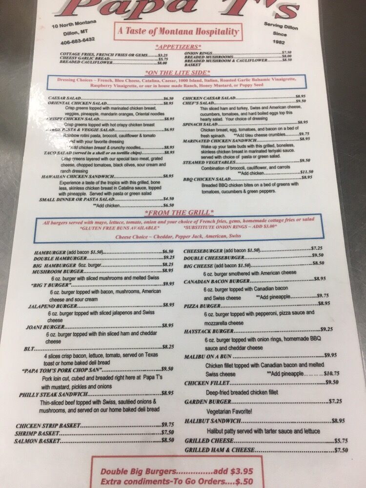 Welcome to Papa T's, a delightful gem nestled in Dillon, MT, bringing the vibrant flavors of Latin American cuisine right to your plate. This seafood and Mexican culinary haven is a must-visit for those seeking an extraordinary dining experience.